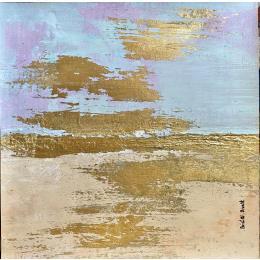 Travailleuse acharnée et passionnée, elle nous entraîne à travers ses mélanges de pigments dans un monde minéral et brut. Ses couleurs métalliques, dorées, cuivrées, rouillées, s’organisent dans un rendu fissuré, craquelé et accidenté, rempli de délicatesse, de poésie et de sérénité.