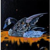 L'artiste a utilisé la technique Acrylique pour créer cette peinture petit format sur Toile de style Figuratif sur les thèmes Animaux, Noir & blanc, Marine.