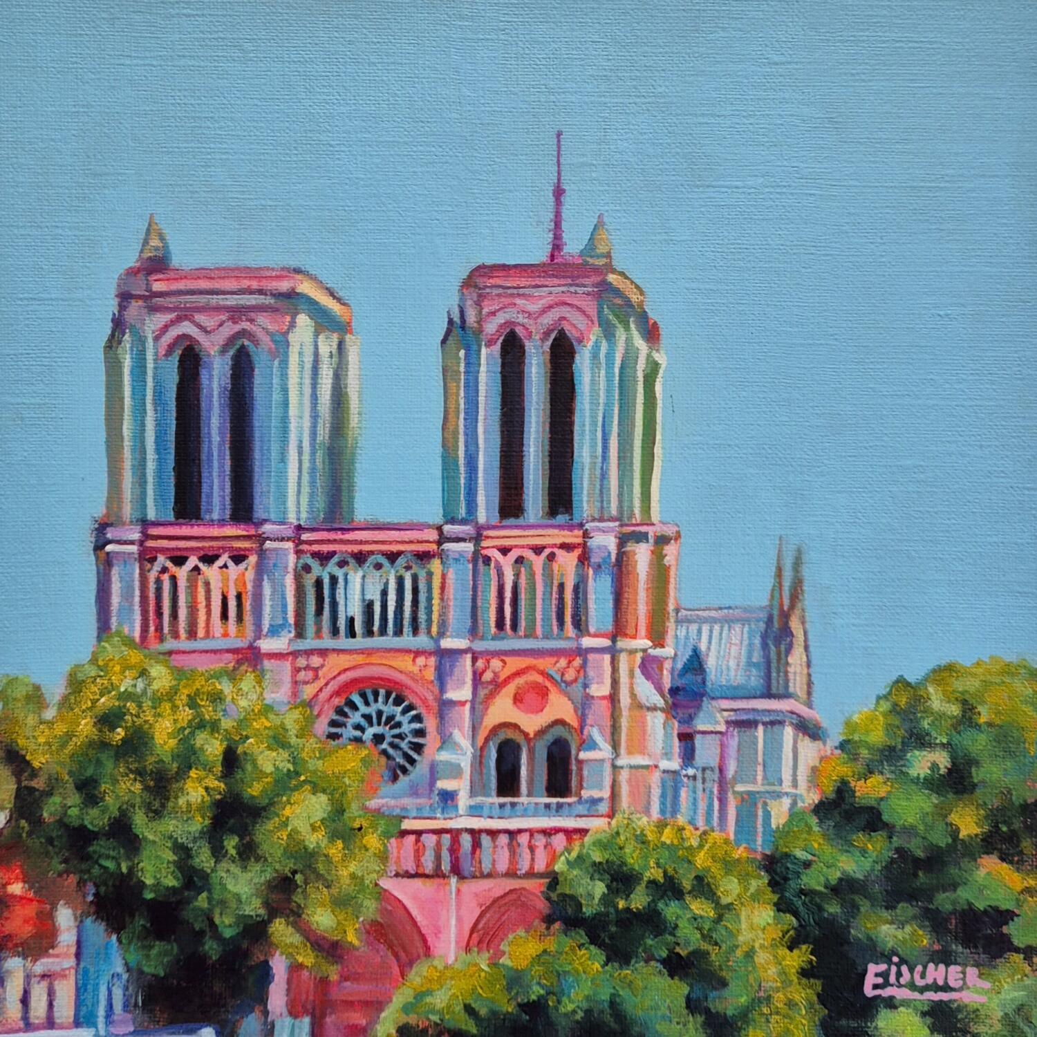 Notre-Dame chromatique Peinture Notre-Dame chromatique  par Emma Fischer | Tableau Figuratif Urbain Nature Architecture Acrylique