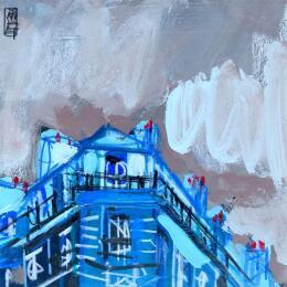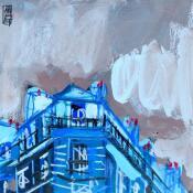 L'artiste a utilisé les techniques Acrylique, Pastel pour créer cette peinture petit format sur Papier de style Figuratif sur les thèmes Architecture, Urbain.