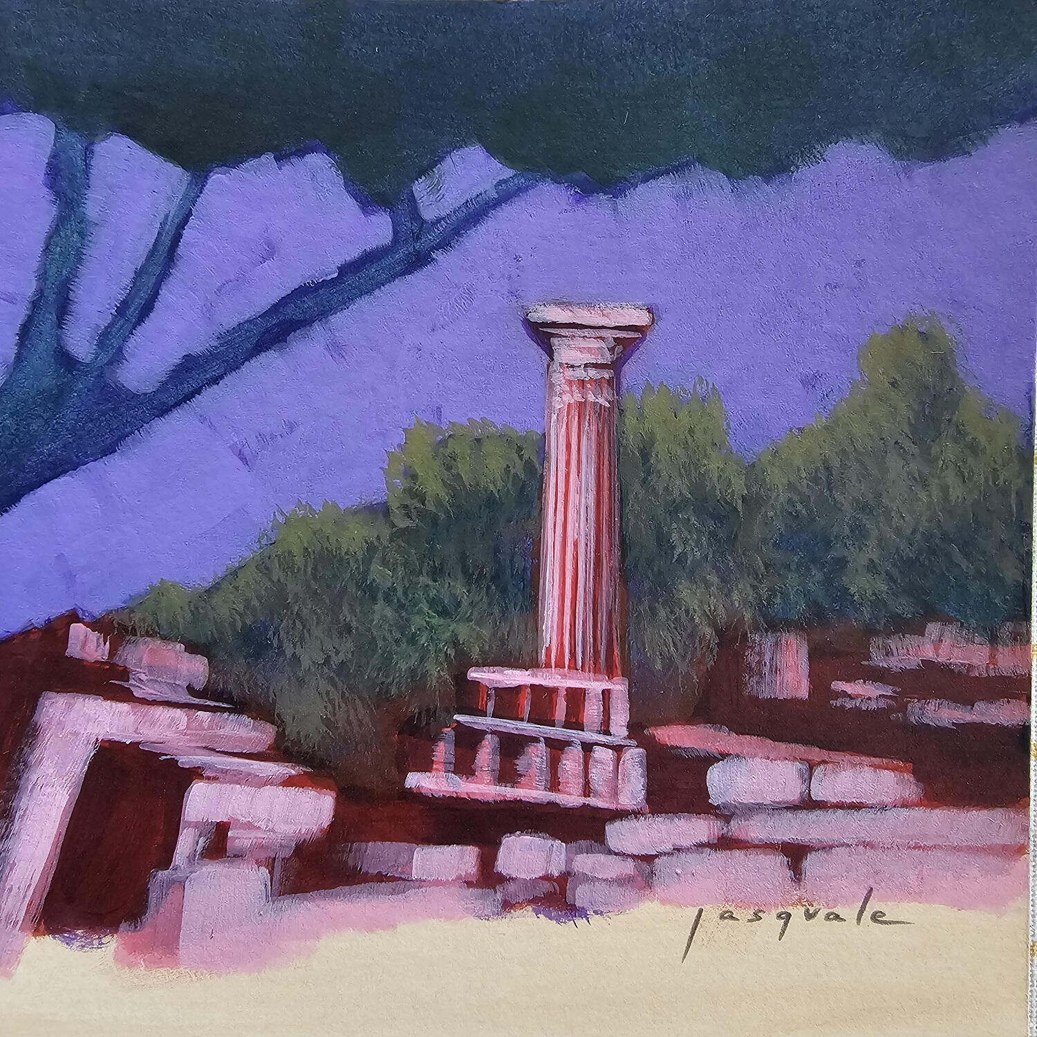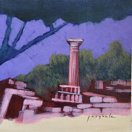 L'artiste a utilisé la technique Acrylique pour créer cette peinture petit format sur Papier de style Figuratif sur les thèmes Architecture, Nature, Paysages.