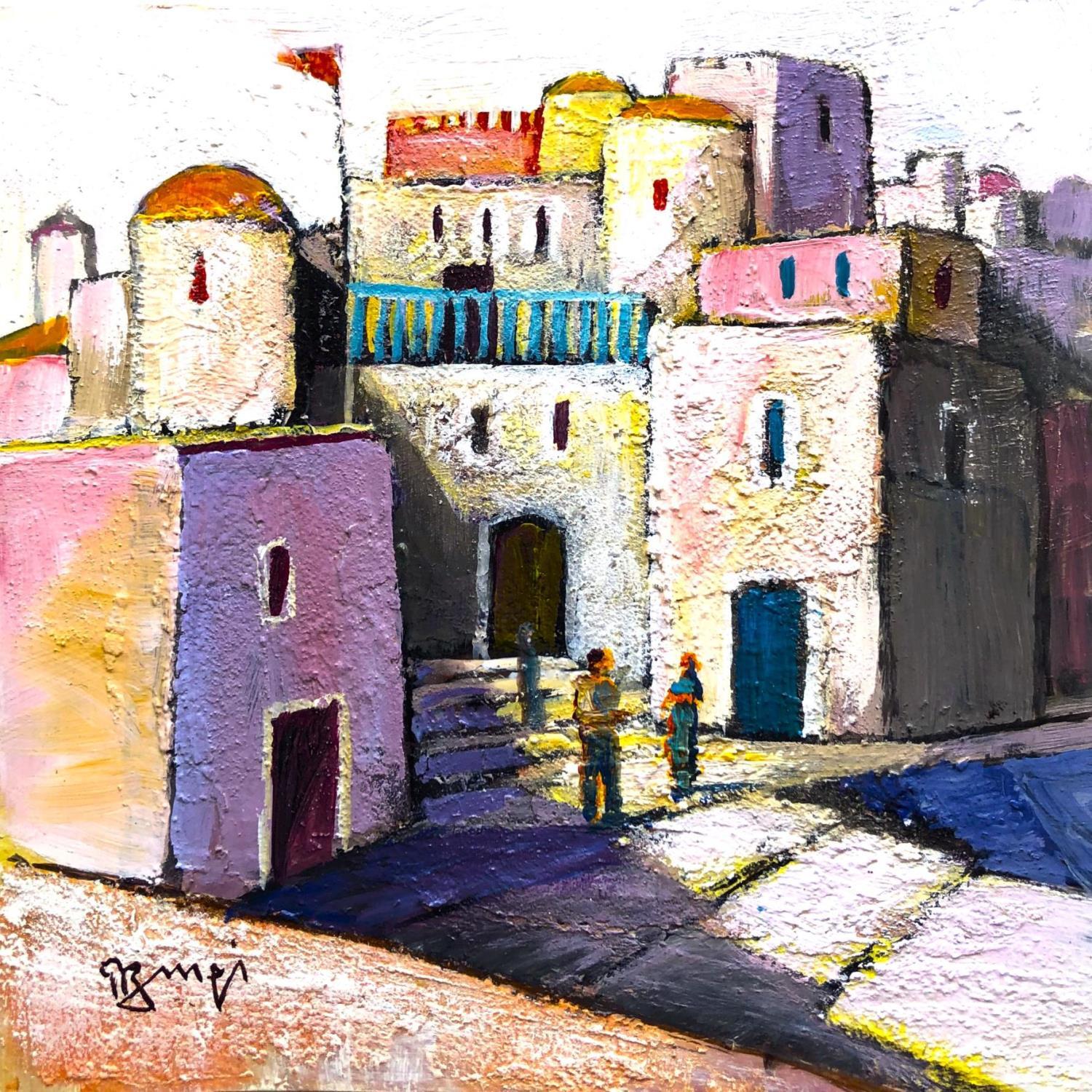 L'artiste a utilisé la technique Acrylique pour créer cette peinture petit format sur Papier de style Figuratif sur les thèmes Architecture, Paysages, Urbain.