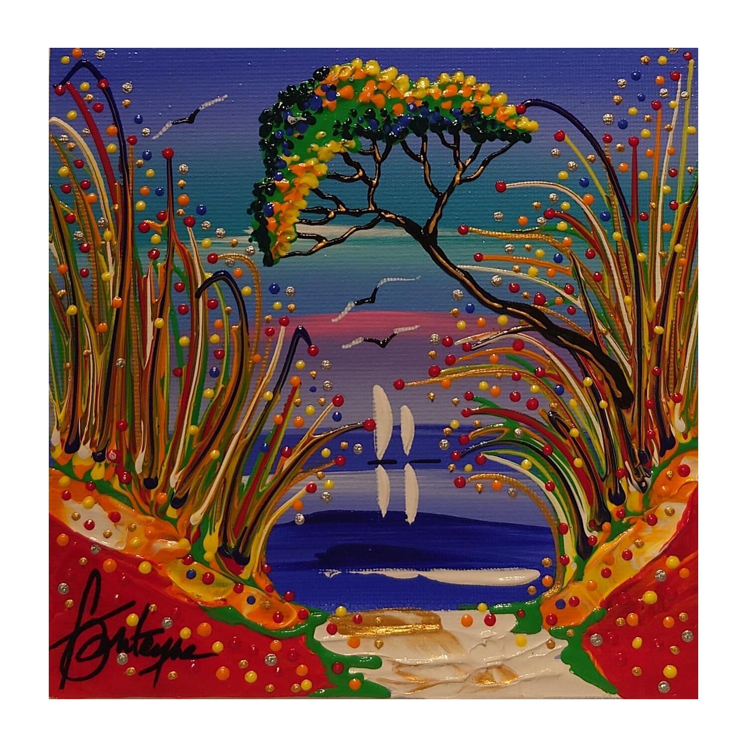L'artiste a utilisé la technique Acrylique pour créer cette peinture petit format sur Toile de style Figuratif.
