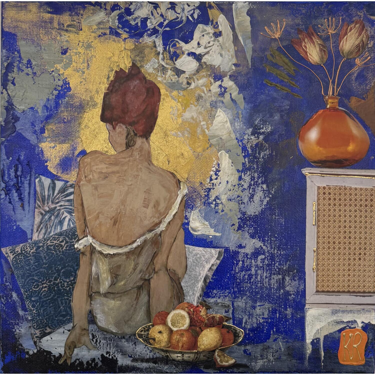 L'artiste a utilisé les techniques Acrylique, Collage pour créer cette peinture petit format sur Toile de style Figuratif.