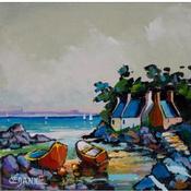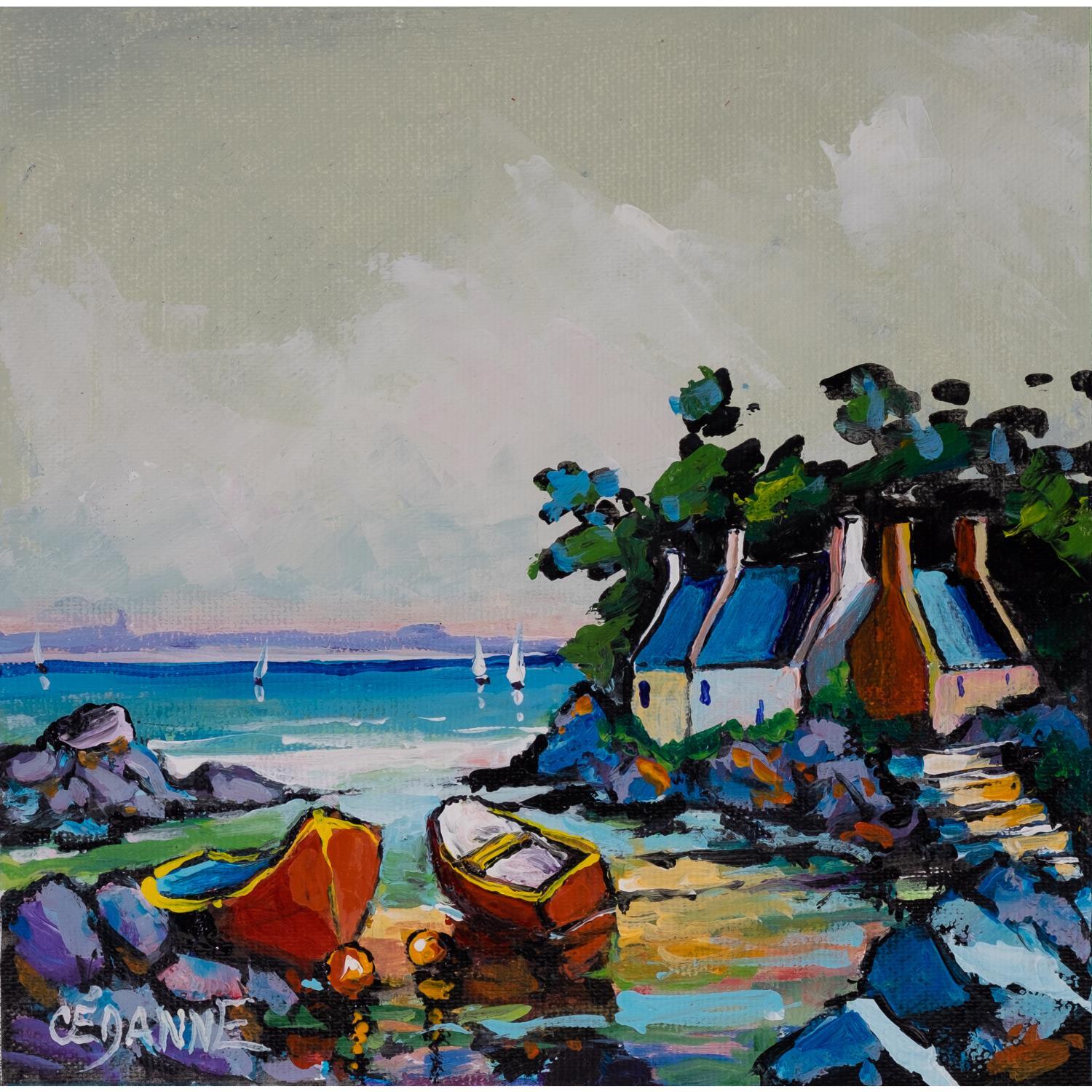 Cette œuvre d'art contemporain unique et originale, de style figuratif, a été réalisée par le peintre Cèdanne. L'artiste a utilisé différentes techniques pour créer cette peinture sur toile petit format, et traiter ce paysage de Bretagne avec le style singulier qui lui est propre.