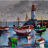 Vol de mouettes sur le portPeinture Vol de mouettes sur le port par Cédanne | Tableau Figuratif Paysages Marine Huile Acrylique