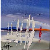 L'artiste a utilisé la technique Acrylique pour créer cette peinture petit format sur Toile de style Figuratif sur le thème Marine.