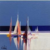 Peinture Les voiles par Chevalier Lionel | Tableau Figuratif Paysages Marine Minimaliste Acrylique