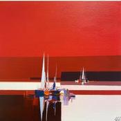 L'artiste a utilisé la technique Acrylique pour créer cette peinture petit format sur Carton toilé de style Figuratif sur les thèmes Marine, Minimaliste.