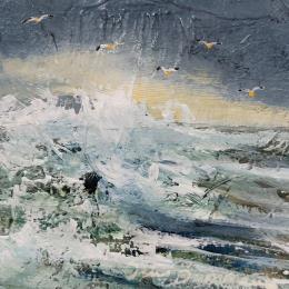 L'artiste a utilisé la technique Acrylique pour créer cette peinture petit format sur Papier de style Figuratif sur le thème Marine.