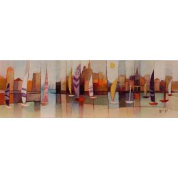 L'artiste a utilisé la technique Acrylique pour créer cette peinture moyen format sur Toile de style Figuratif sur les thèmes Marine, Paysages.