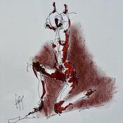 L'artiste a utilisé les techniques Encre, Aquarelle et Pastel pour créer cette peinture petit format sur Papier de style Figuratif sur les thèmes Minimaliste, Nu.