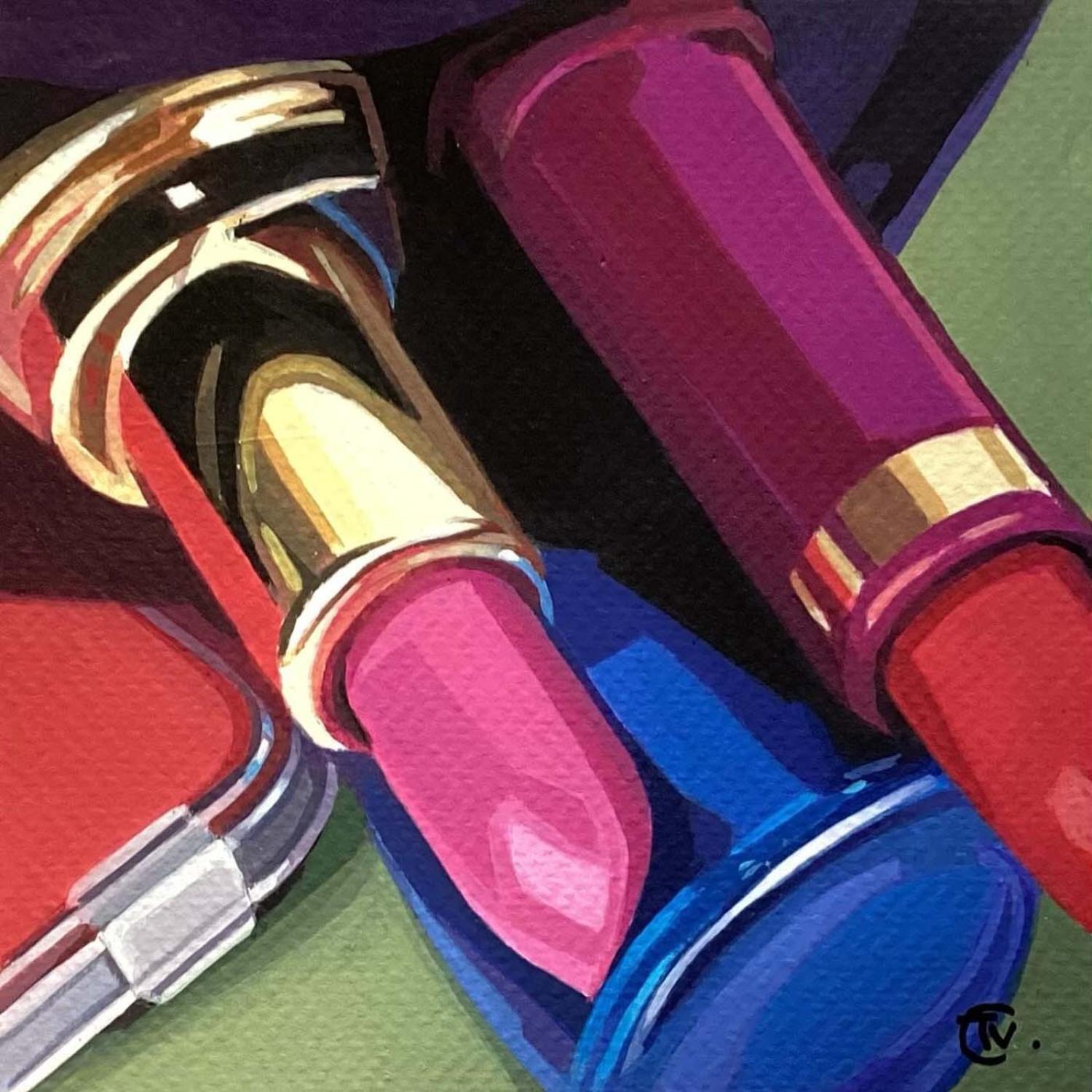 L'artiste a utilisé la technique Acrylique pour créer cette peinture petit format sur Papier de style Figuratif sur les thèmes Mode, Scènes de vie, Natures mortes.