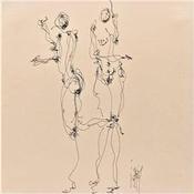 L'artiste a utilisé la technique Acrylique pour créer cette peinture petit format sur papier de style Figuratif sur les thèmes noir & blanc, nu.