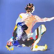 L'artiste a utilisé différentes techniques pour créer cette peinture petit format sur toile de style Figuratif sur le thème Nu.