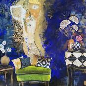 L'artiste a utilisé les techniques Acrylique, Collage pour créer cette peinture grand format sur Toile de style Figuratif sur les thèmes Nu, Portraits, Scènes de vie.