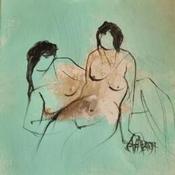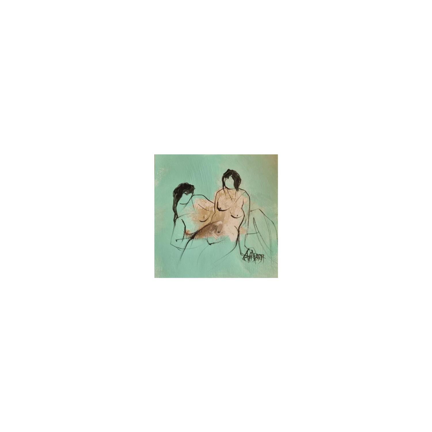 L'artiste a utilisé la technique Acrylique pour créer cette peinture petit format sur Papier de style Figuratif sur le thème Nu.