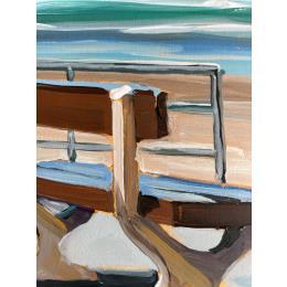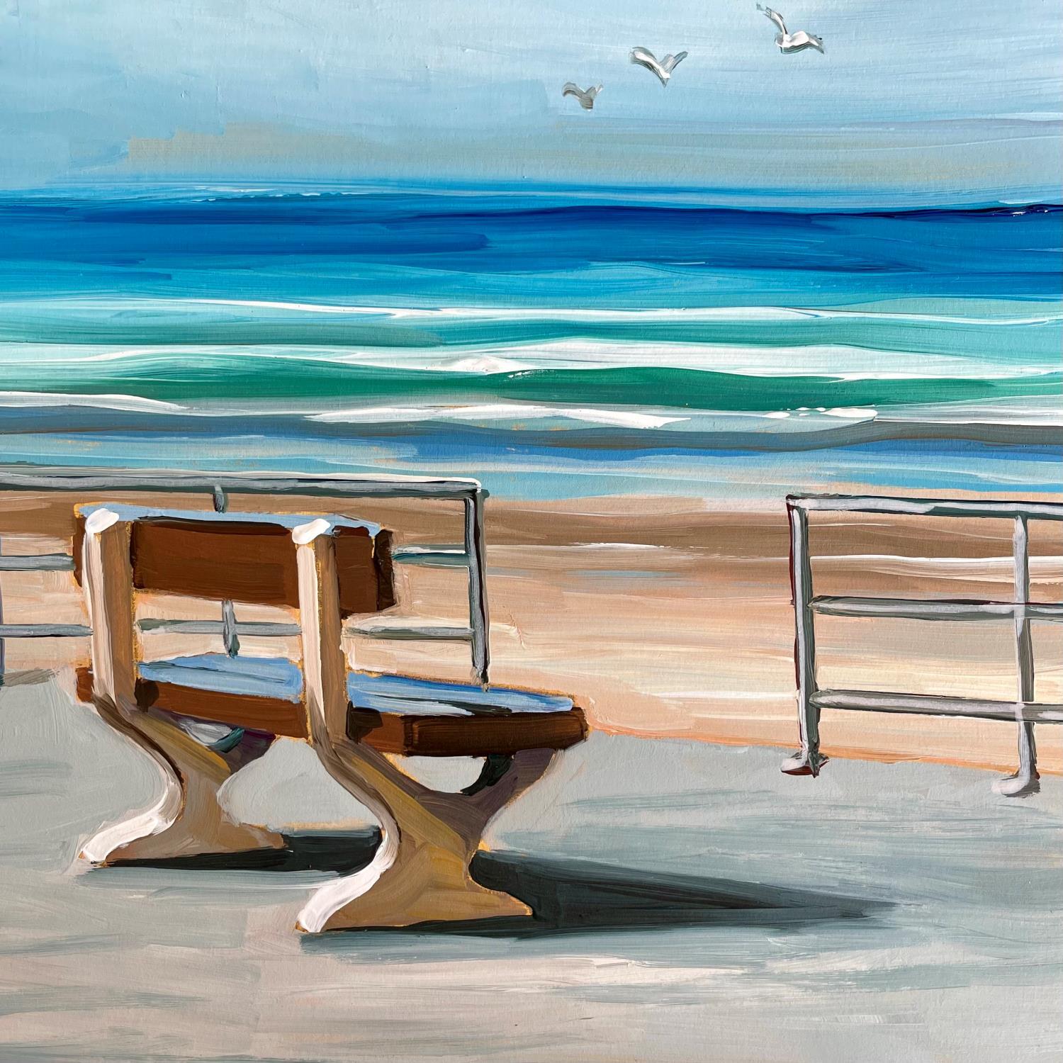 Peinture F3 le banc sur la digue par Alice Roy | Tableau Figuratif Paysages Marine Nature Acrylique