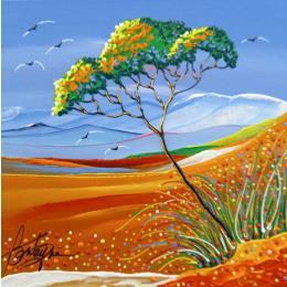 L'artiste a utilisé la technique Acrylique pour créer cette peinture petit format sur Carton toilé de style Figuratif sur les thèmes Paysages, Nature.