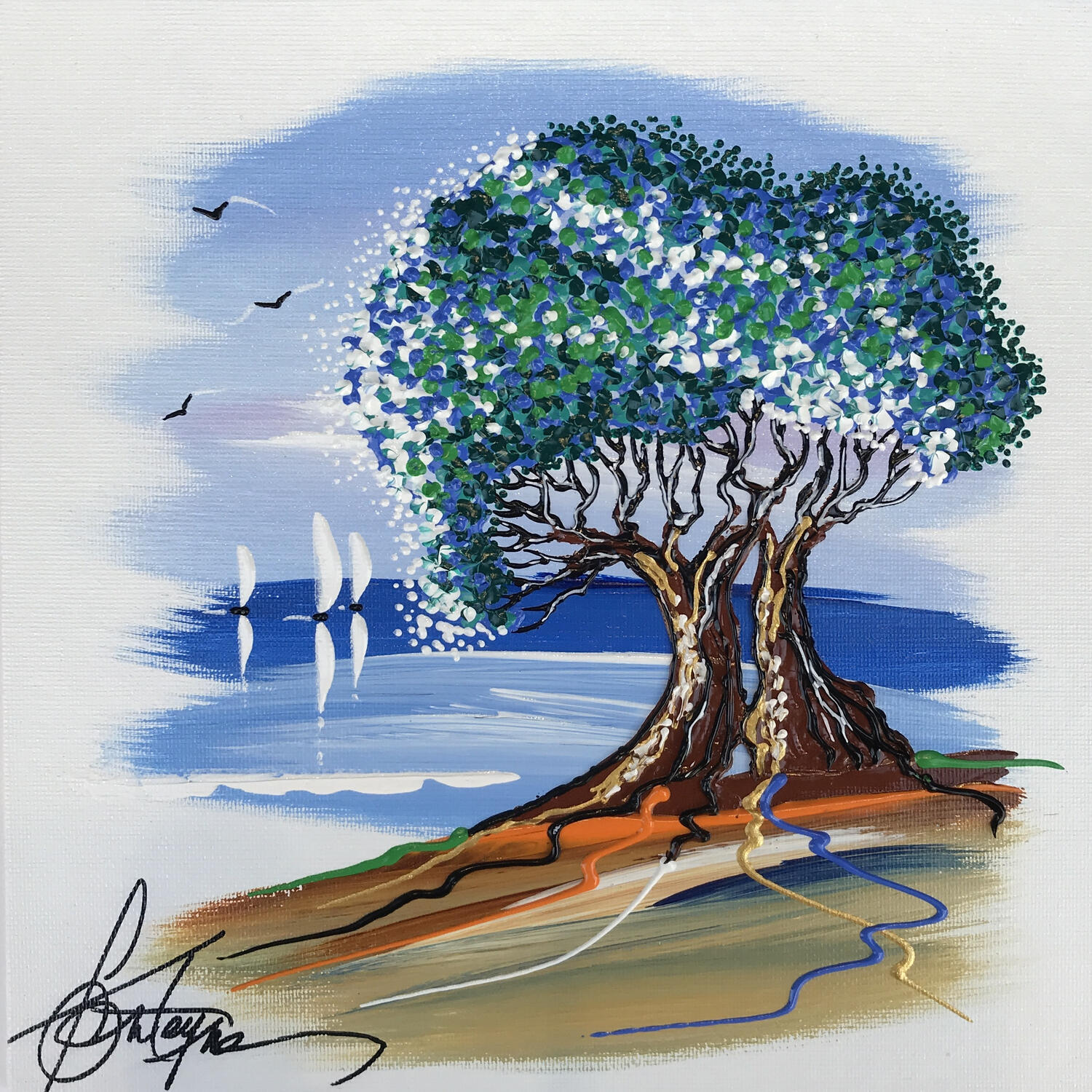 L'artiste a utilisé la technique Acrylique pour créer cette peinture petit format sur Toile de style Figuratif.