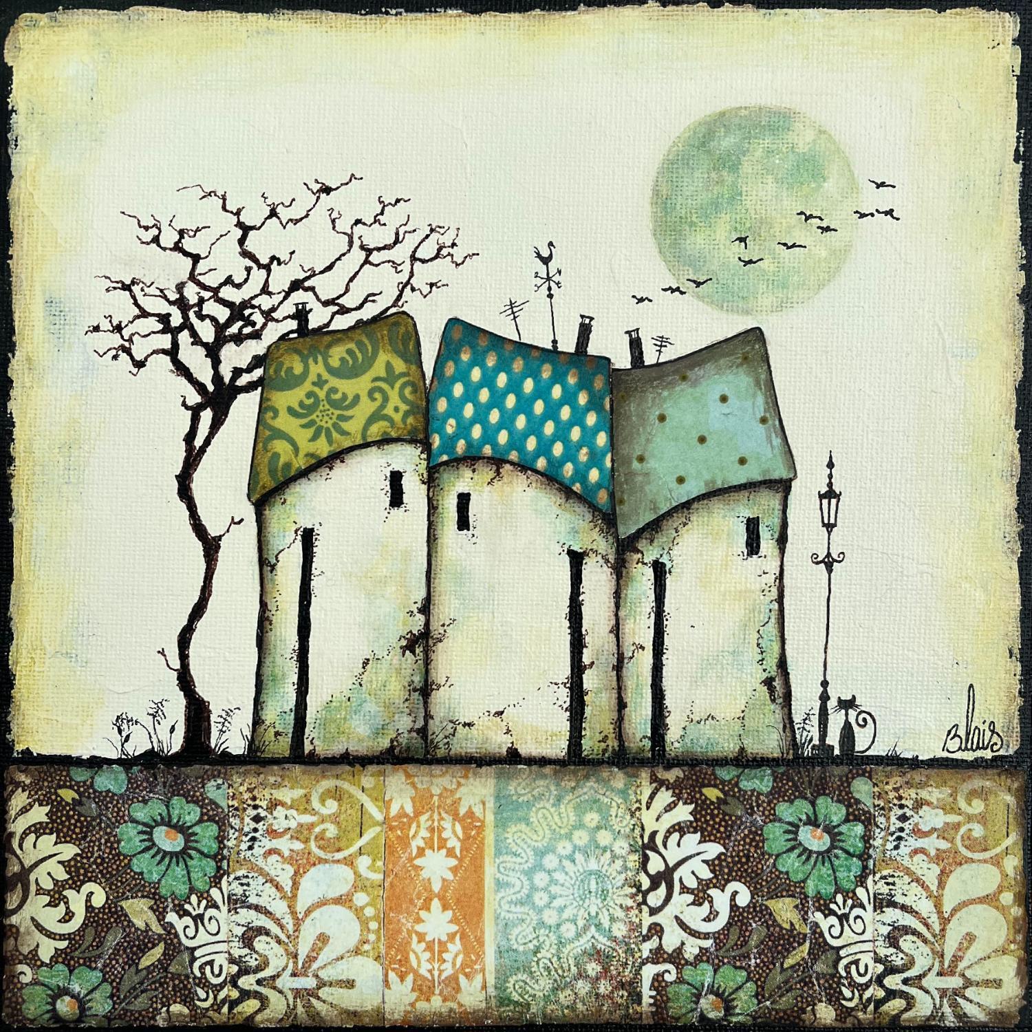 L'artiste a utilisé les techniques Acrylique, Collage pour créer cette peinture petit format sur Carton toilé de style Figuratif sur le thème Paysages.