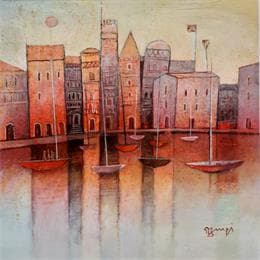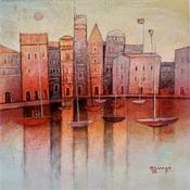 L'artiste a utilisé la technique Acrylique pour créer cette peinture petit format sur Toile de style Figuratif sur les thèmes Paysages, Marine, Urbain.