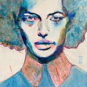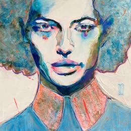 L'artiste a utilisé la technique Acrylique pour créer cette peinture petit format sur carton toilé de style Figuratif sur le thème Portraits.