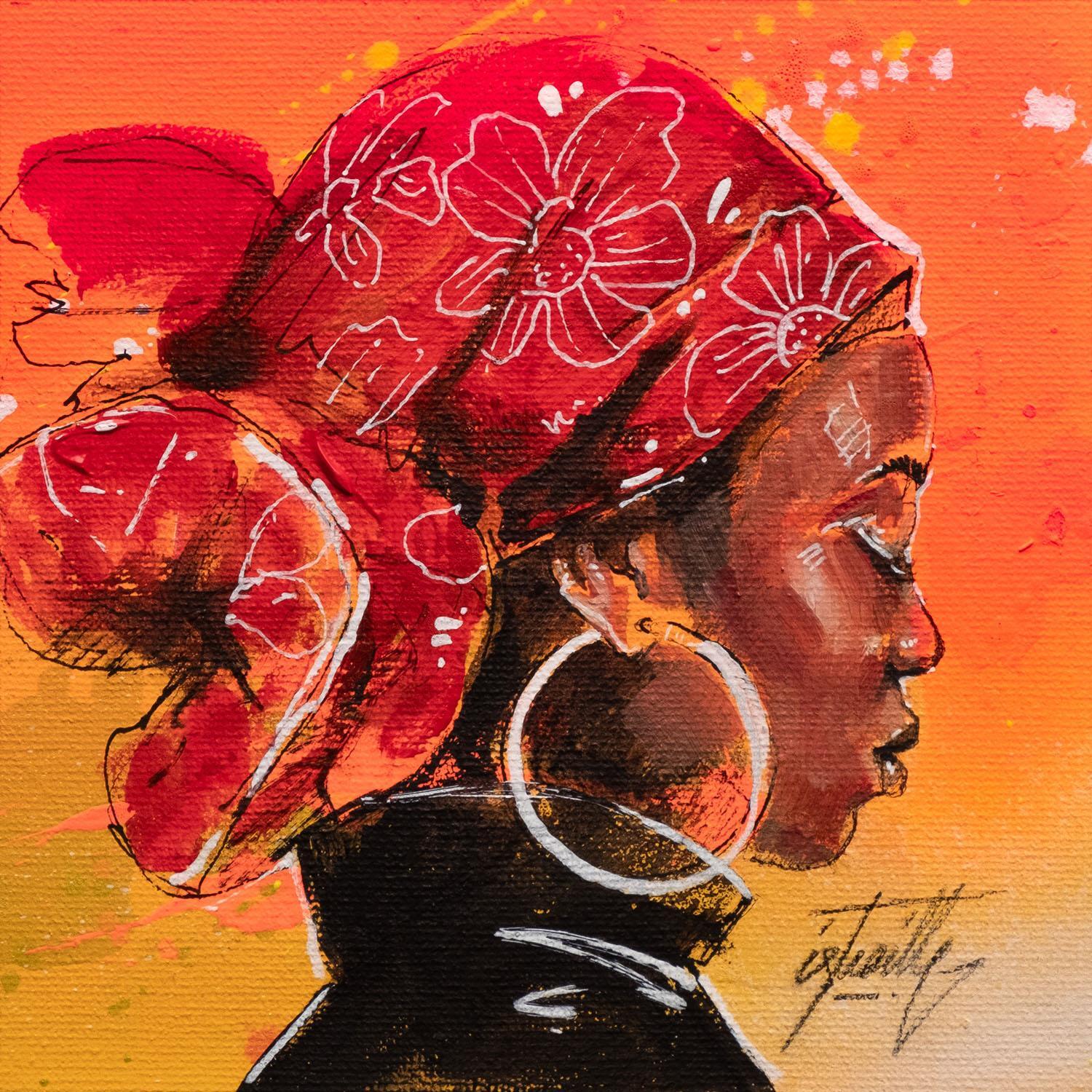 L'artiste a utilisé la technique Acrylique pour créer cette peinture petit format sur Toile de style Figuratif sur le thème Portraits.