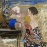 L'artiste a utilisé les techniques Acrylique, Collage pour créer cette peinture petit format sur Carton toilé de style Figuratif sur les thèmes Portraits, Scènes de vie.