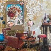 Cette oeuvre d'art contemporain unique et originale "Les cocktails du soir " a été réalisée par l'artiste contemporain Romanelli Karine.