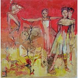 Cette oeuvre d'art contemporain unique et originale "Les filles et les papillons" a été réalisée par l'artiste contemporain Machi.