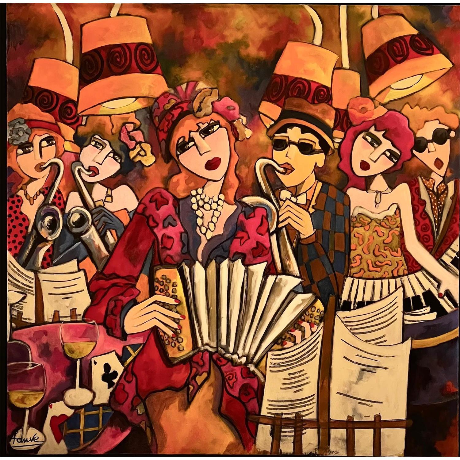 Cette oeuvre d'art contemporain unique et originale "Enchantement musical" a été réalisée par l'artiste contemporain Fauve. L'artiste a utilisé la technique Acrylique pour créer cette peinture grand format sur Toile de style Figuratif sur le thème Scènes de vie.