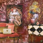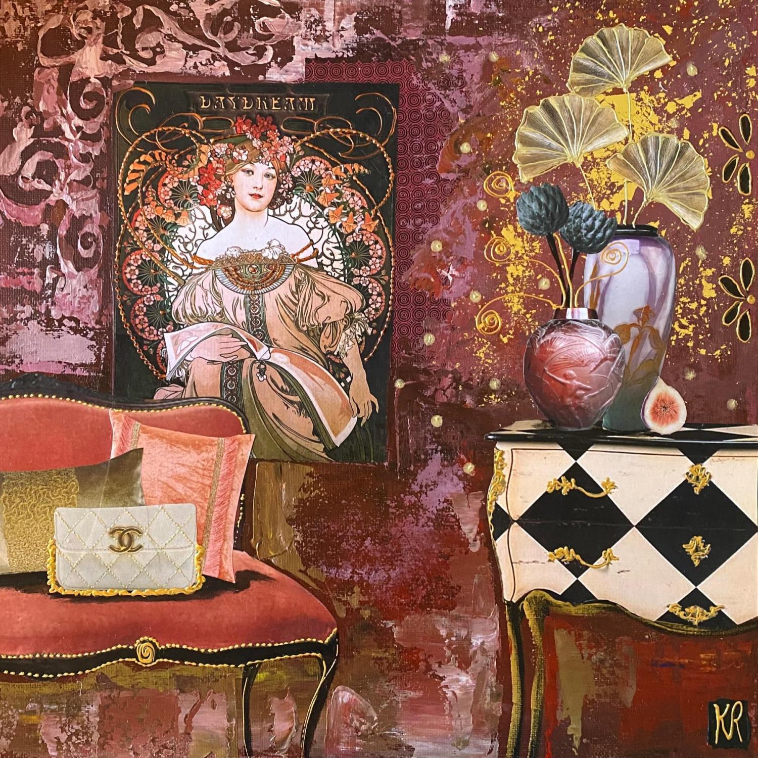 L'artiste a utilisé les techniques Acrylique, Collage, Feuille d'or, Papier, Pastel, Posca pour créer cette peinture petit format sur Carton toilé de style Figuratif sur le thème Scènes de vie.