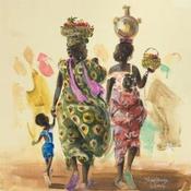 Cette oeuvre d'art contemporain unique et originale "Deux Dames et Enfants" a été réalisée par l'artiste contemporain Lama Niankoye.