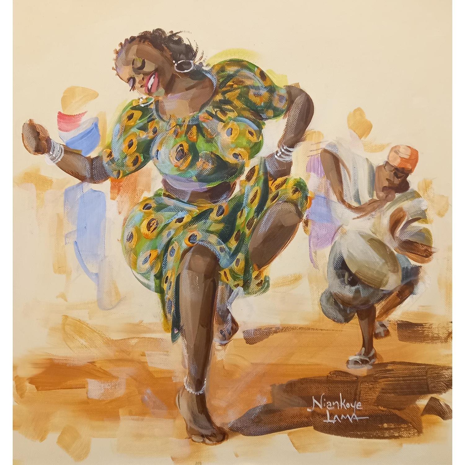 Peinture La danseuse au djembé par Lama Niankoye | Tableau Figuratif Scènes de vie Acrylique