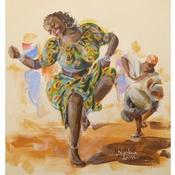 Cette oeuvre d'art contemporain unique et originale "La danseuse au djembé" a été réalisée par l'artiste contemporain Lama Niankoye.
