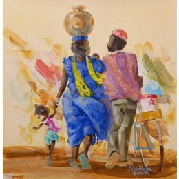 La famille 2Peinture La famille 2 par Lama Niankoye | Tableau Figuratif Scènes de vie Acrylique