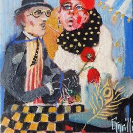 L'artiste a utilisé la technique Acrylique pour créer cette peinture petit format sur Carton toilé de style Figuratif sur le thème Scènes de vie.
