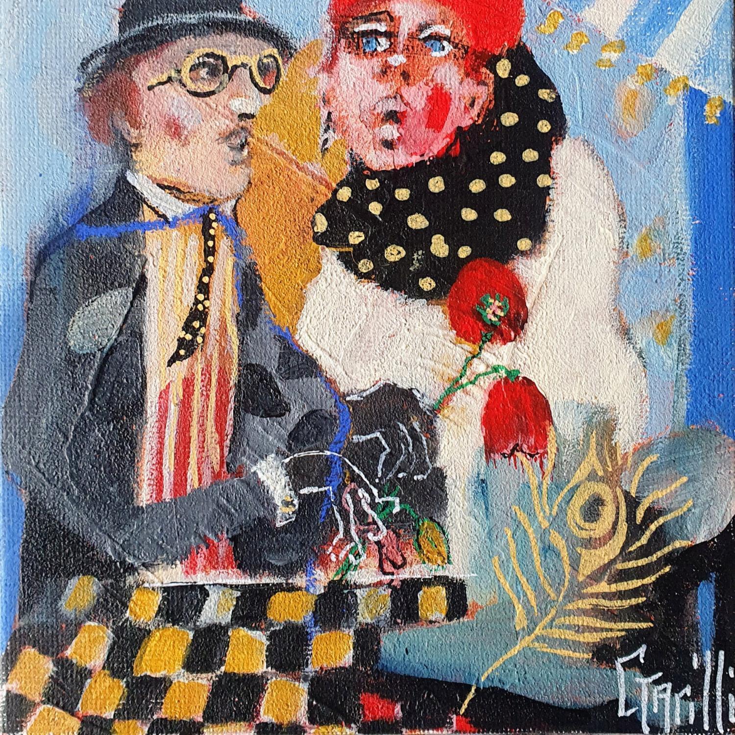 Douce rencontrePeinture Douce rencontre par Garilli Nicole | Tableau Figuratif Scènes de vie Acrylique