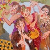 Cette oeuvre d'art contemporain unique et originale "joyeux concert de rue. " a été réalisée par l'artiste contemporain Garilli Nicole.