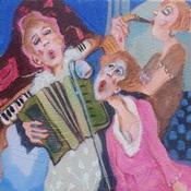 L'artiste a utilisé la technique Acrylique pour créer cette peinture petit format sur Carton toilé de style Figuratif sur le thème Scènes de vie.