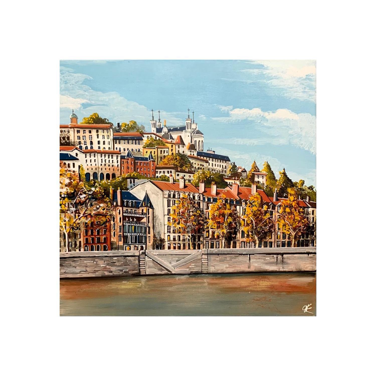 Peinture Lyon quai de Saône en automne par Touras Sophie-Kim | Tableau Figuratif Urbain Acrylique