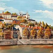 Peinture Lyon quai de Saône en automne  par Touras Sophie-Kim  | Tableau Figuratif Urbain Acrylique