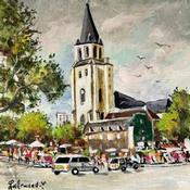 Abbaye de Paris Saint GermainPeinture Abbaye de Paris Saint Germain par Lallemand Yves | Tableau Figuratif Urbain Acrylique