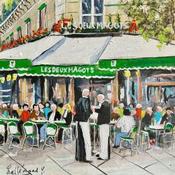Peinture Les Deux Magots par Lallemand Yves | Tableau Figuratif Urbain Acrylique