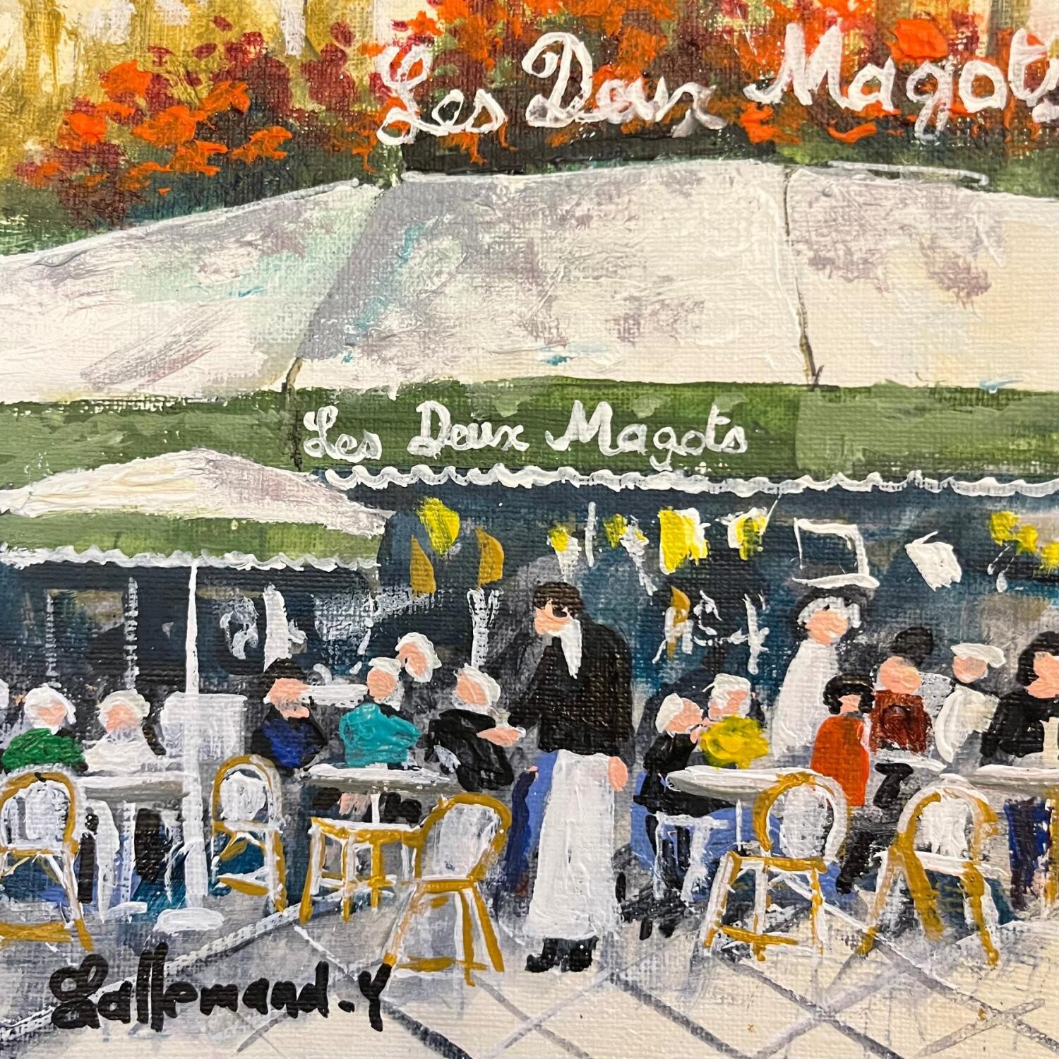 Peinture Les Deux Magots par Lallemand Yves | Tableau Figuratif Urbain Acrylique