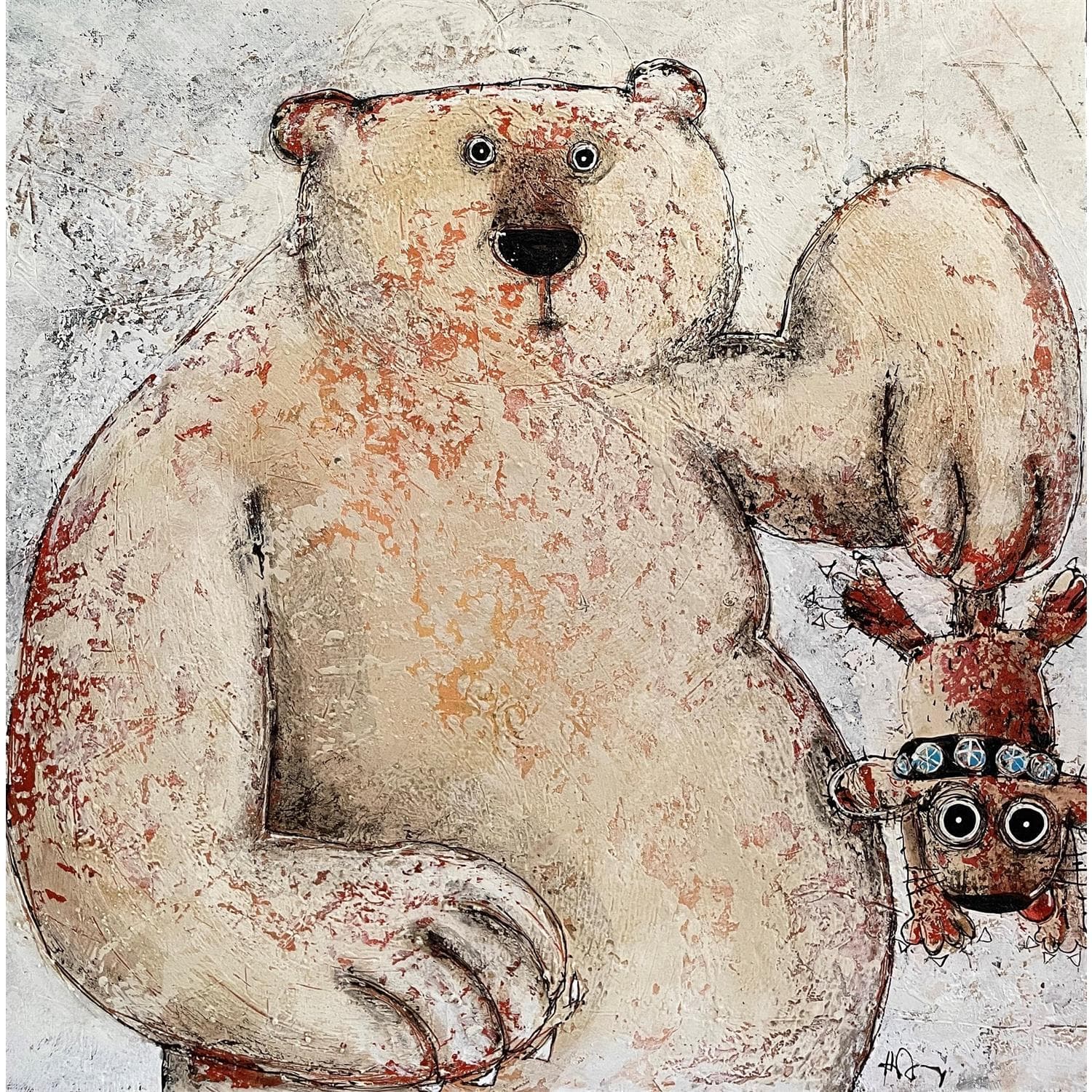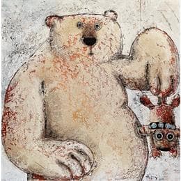 L'artiste a utilisé différentes techniques pour créer cette peinture grand format sur toile de style Figuratif sur les thèmes animaux, Portraits.