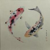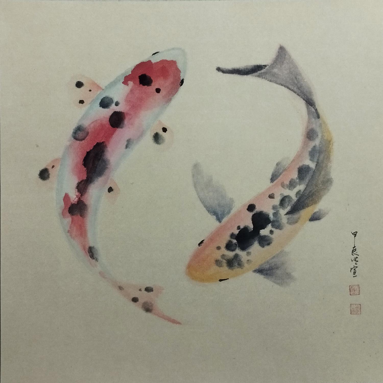 Carp koi 5Peinture Carp koi 5 par Du Mingxuan | Tableau Figuratif Marine Animaux Aquarelle Encre