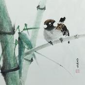 Cette oeuvre d'art contemporain unique et originale "Sparrow and bamboo" a été réalisée par l'artiste contemporain Du Mingxuan.