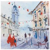 L'artiste a utilisé les techniques Aquarelle, Encre pour créer cette peinture petit format sur Papier de style Figuratif sur les thèmes Architecture, Urbain.